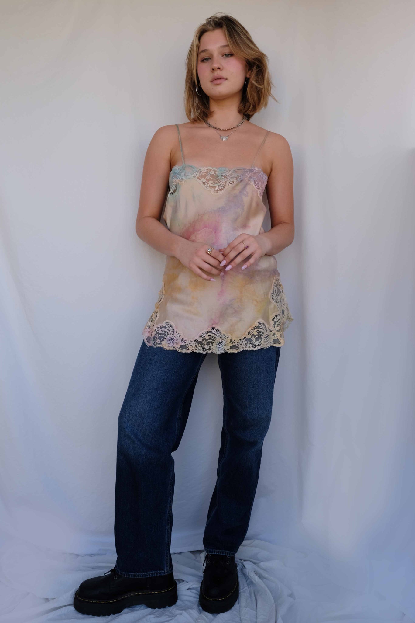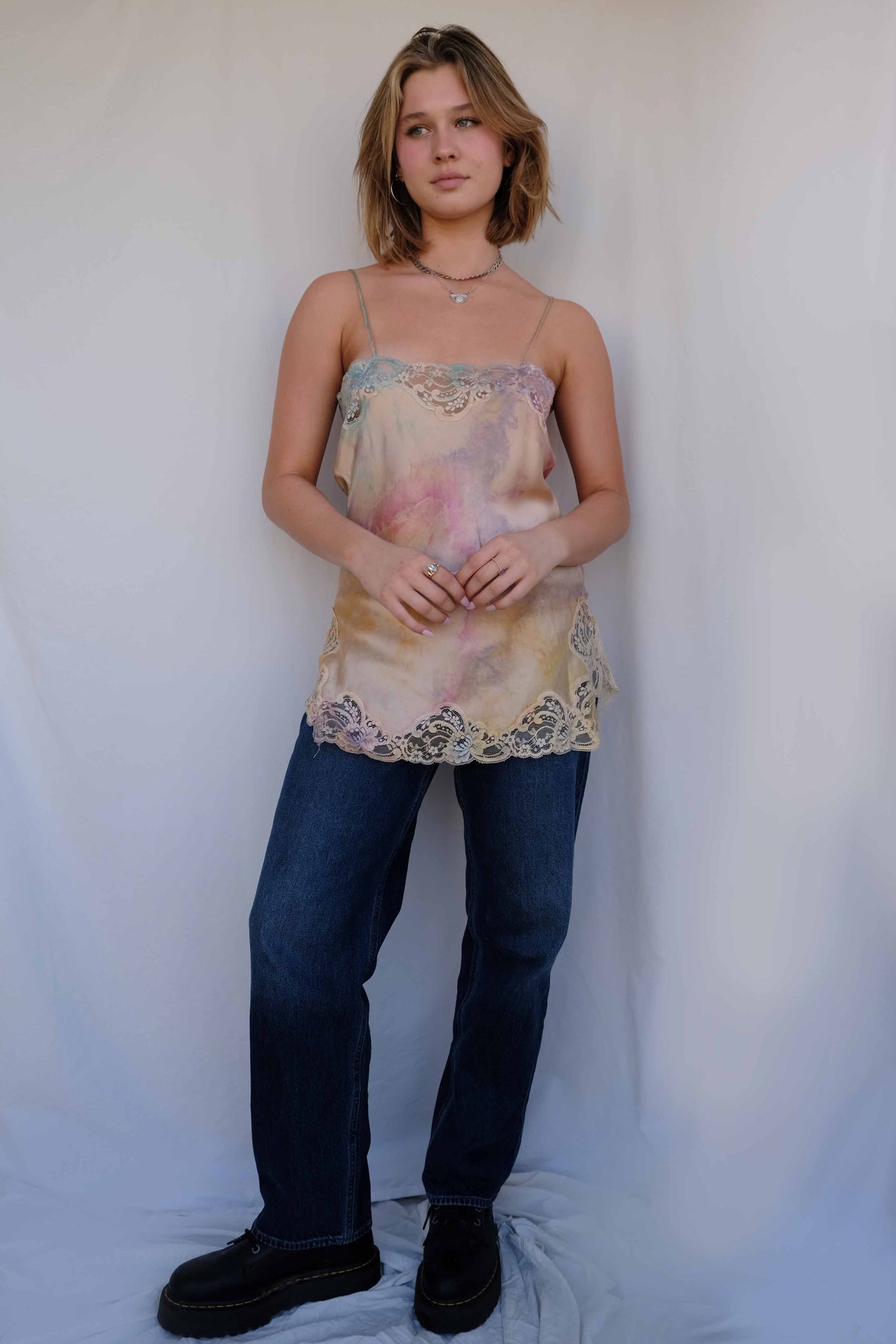 Hand Dyed Silk Bias Nightie With Lace Trim